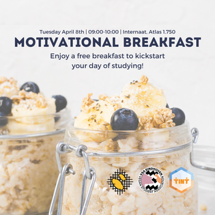 Join this motivational breakfast by TINT, VSA (vegan student association), and Intermate (study association of Sustainable Innovation and Psychology & Technology).