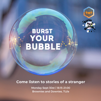 Life unfolds in different ways for everyone and being a human can be wonderfully diverse which we tend to forget these days. We at TINT and Burst your Bubble will bring together students with different walks of life from our community at TU/e to show you what makes us, us. Join to experience this unique event and discover the stories of people, in a deeply personal way. Life stories can take us to places, situations and emotions that we have never imagined before... And we love that! Expect heartening, raw and honest stories that will broaden your horizons.